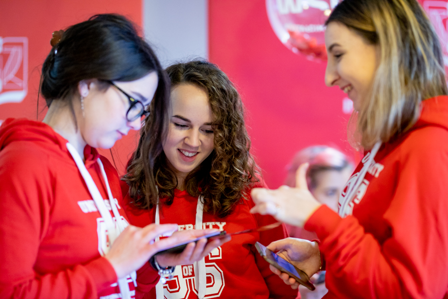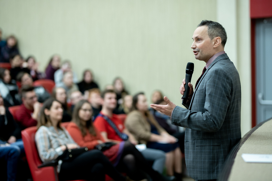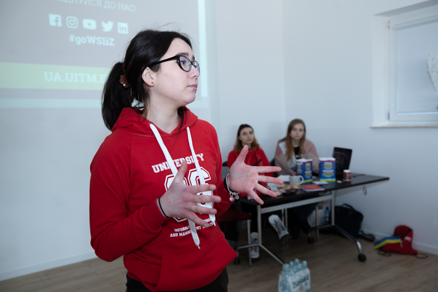 Всю освітню пропозицію УІТМ представила магістр Уршула Конкол, а про можливості випускників університетів на ринку праці розповів проректор УІТМ, доктор Анджей Розмус. Він, зокрема, зазначив, що аж 41 відсоток студентів отримують пропозиції про роботу відразу після закінчення стажування, тобто, поки вони ще навчаються. Ми також підготували для вас спеціальну подію – лекцію запрошеної доктор Еви Войдило – Осятинської. Колись усі люди приятелювали між собою. А як є сьогодні? «Зфейсбуковані. Як соціальні медіа впливають на наше життя, емоції та стосунки з оточуючими »- про це йшлося в лекції.
