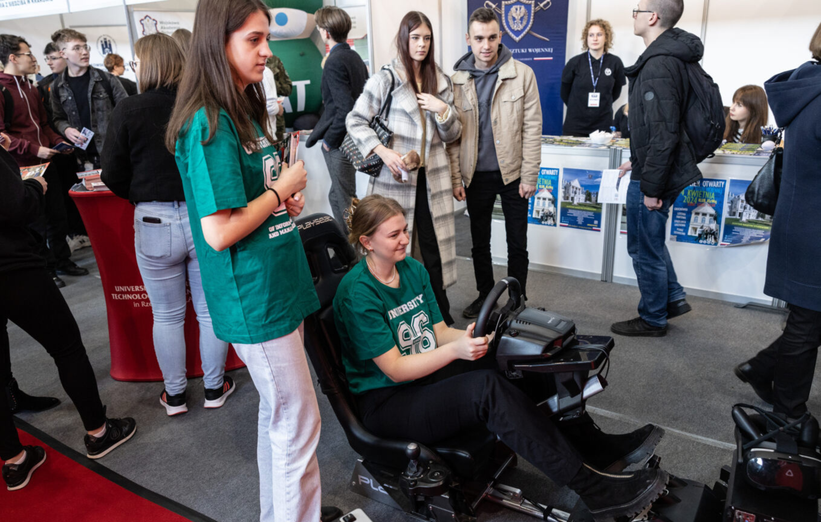 Значний інтерес в абітурієнтів викликав стенд з окулярами віртуальної реальності (VR), які дозволяють перенестися у цифровий простір, симулятор водіння вантажівок та процедура парафінотерапії рук. Таким чином, учні середніх шкіл знайомляться з Університетом інформаційних технологій і менеджменту в Жешуві та пропозиціями навчання. Освітній ярмарок Edu Salon проходив у «Halа Podpromie» 21-22 лютого.