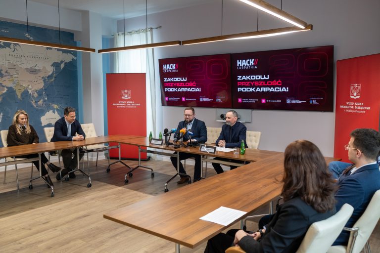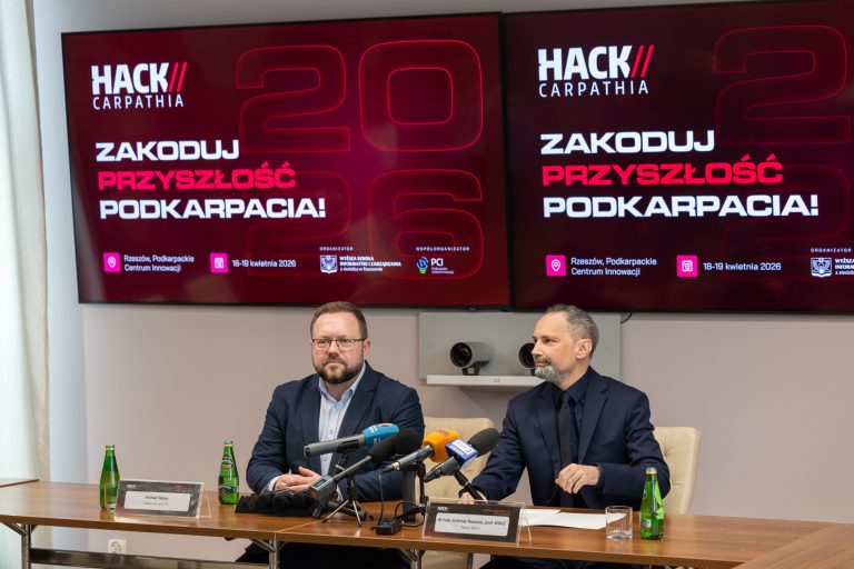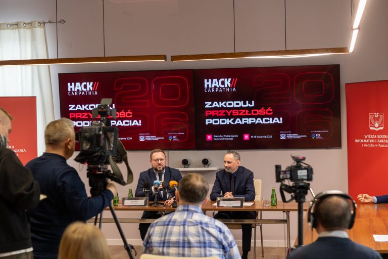 На пресконференції, що відбулася в Університеті інформаційних технологій та менеджменту (УІТМ) у Жешуві, Ректор УІТМ та Президент Підкарпатського центру інновацій анонсували III едицію HackCarpathia 2026. Захід уже закріпився на хакатоновій мапі Польщі та вирізняється своєю особливою атмосферою.