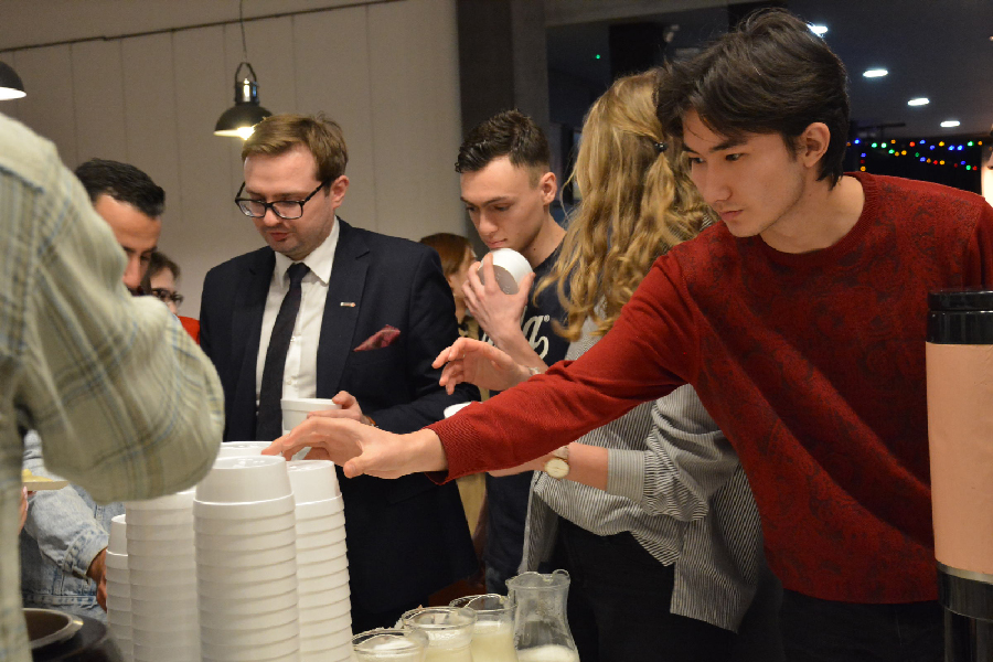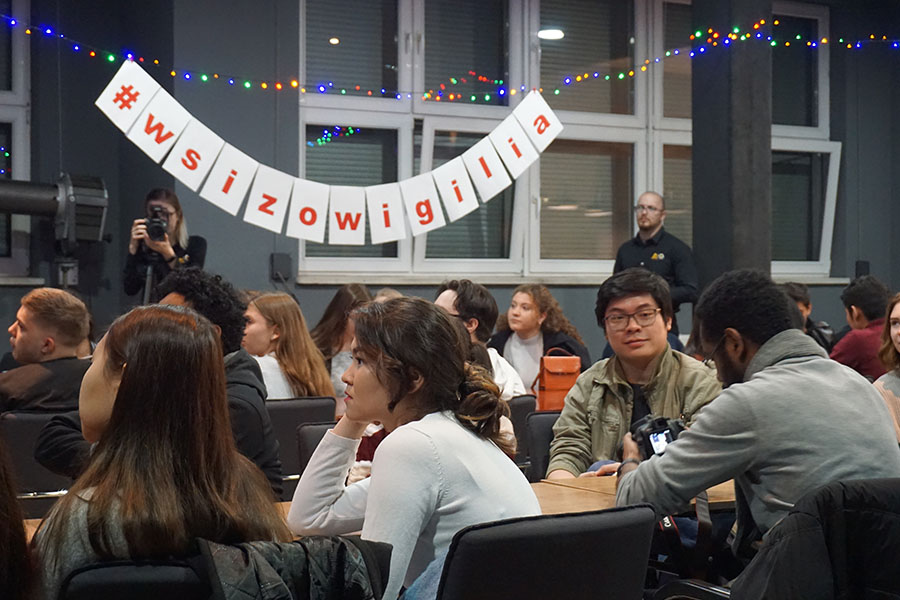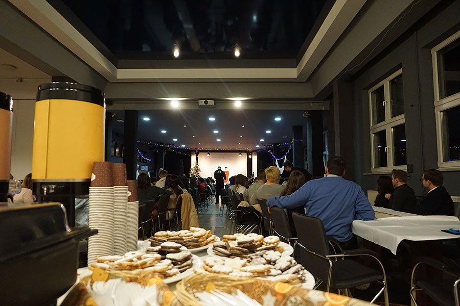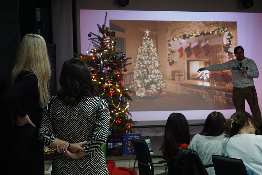 Понад 120 людей, серед яких викладачі та адміністративні працівники УІТМ, були в захопленні від чесної та інколи смішної презентації про польські святкові традиції, яку представили Патрик Таутер та Олександра Сагатовська. Вони перерахували основні елементи польського Різдва – відомі усім полякам, але все ще іноді загадкові для іноземців. Ялинка, перша зірка, молитва, вафлі та обмін побажаннями та проведення часу з родиною – ось перші речі, пов’язані з 25 грудня та Польщею. Однак, як зізнався Патрик, найприємнішим моментом для нього є споживання святкових страв – особливо типових для Польщі: борщу, вареників, гороху з капустою, рагу, крокетів та макухи.